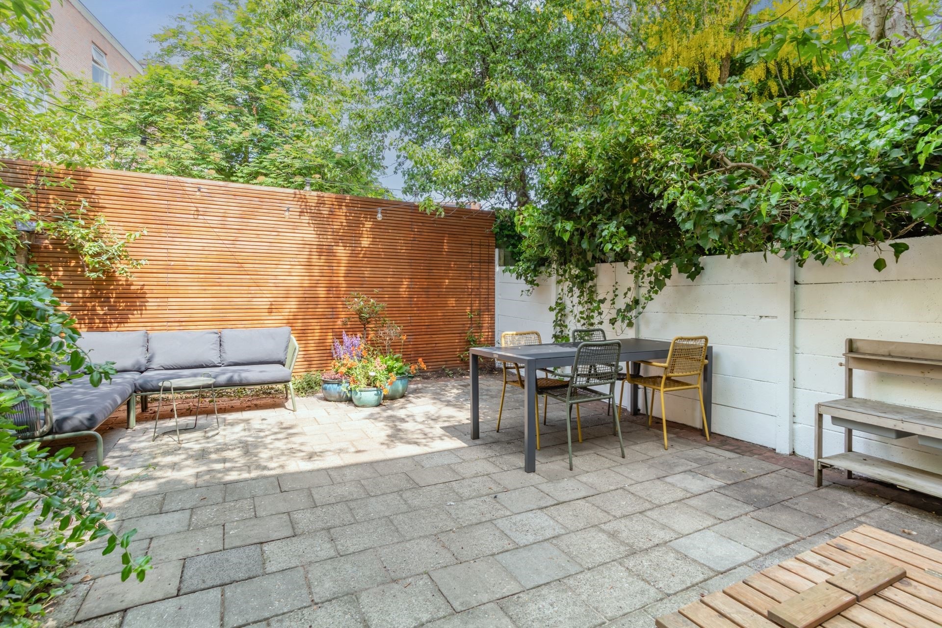 De tuin van ruim 55 m2 is een absoluut pareltje en biedt meer dan voldoende ruimte voor een grote eettafel, een loungeplek en een eventuele buitenkeuken.