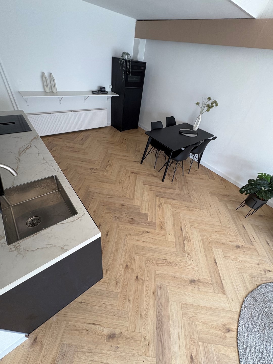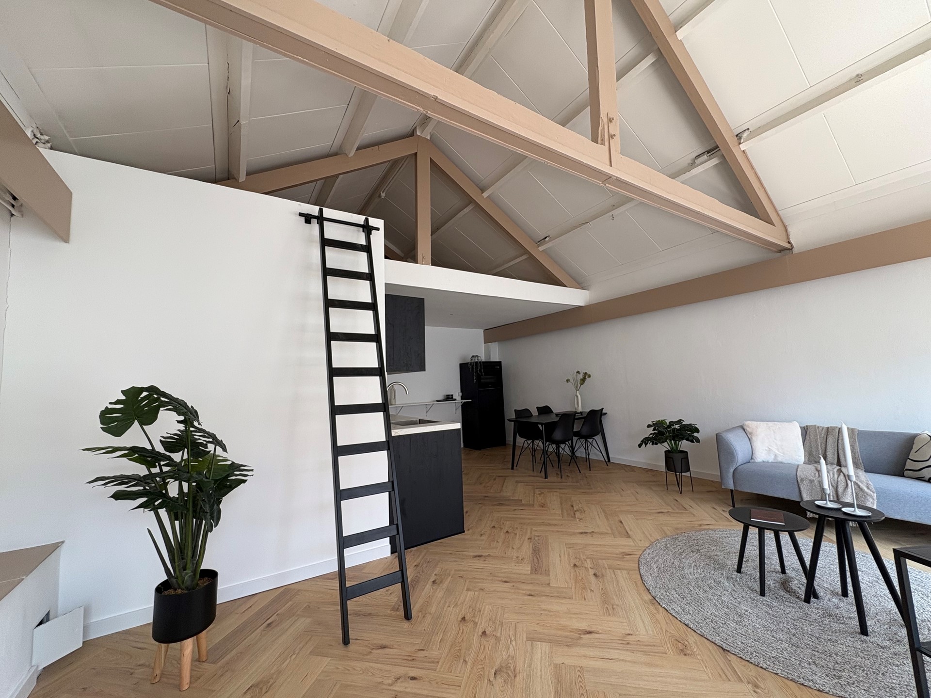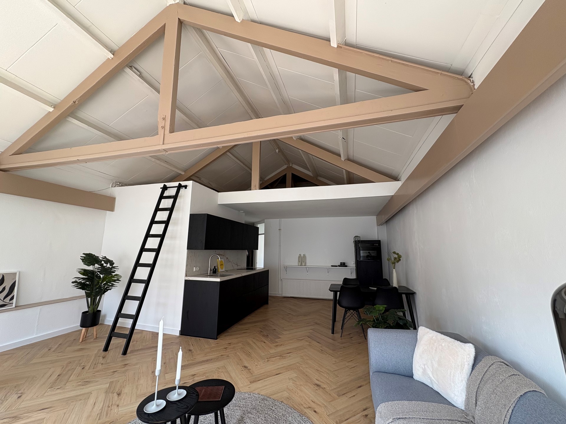 Upon entering, the high ceilings immediately catch your eye, giving the apartment a bright and open feel. Large windows flood the space with natural light, while the open loft area adds a playful touch and extra functionality, ideal for a home office, guest space or creative corner. The spacious living room with open kitchen forms the heart of the home: a place to cook, relax and enjoy.