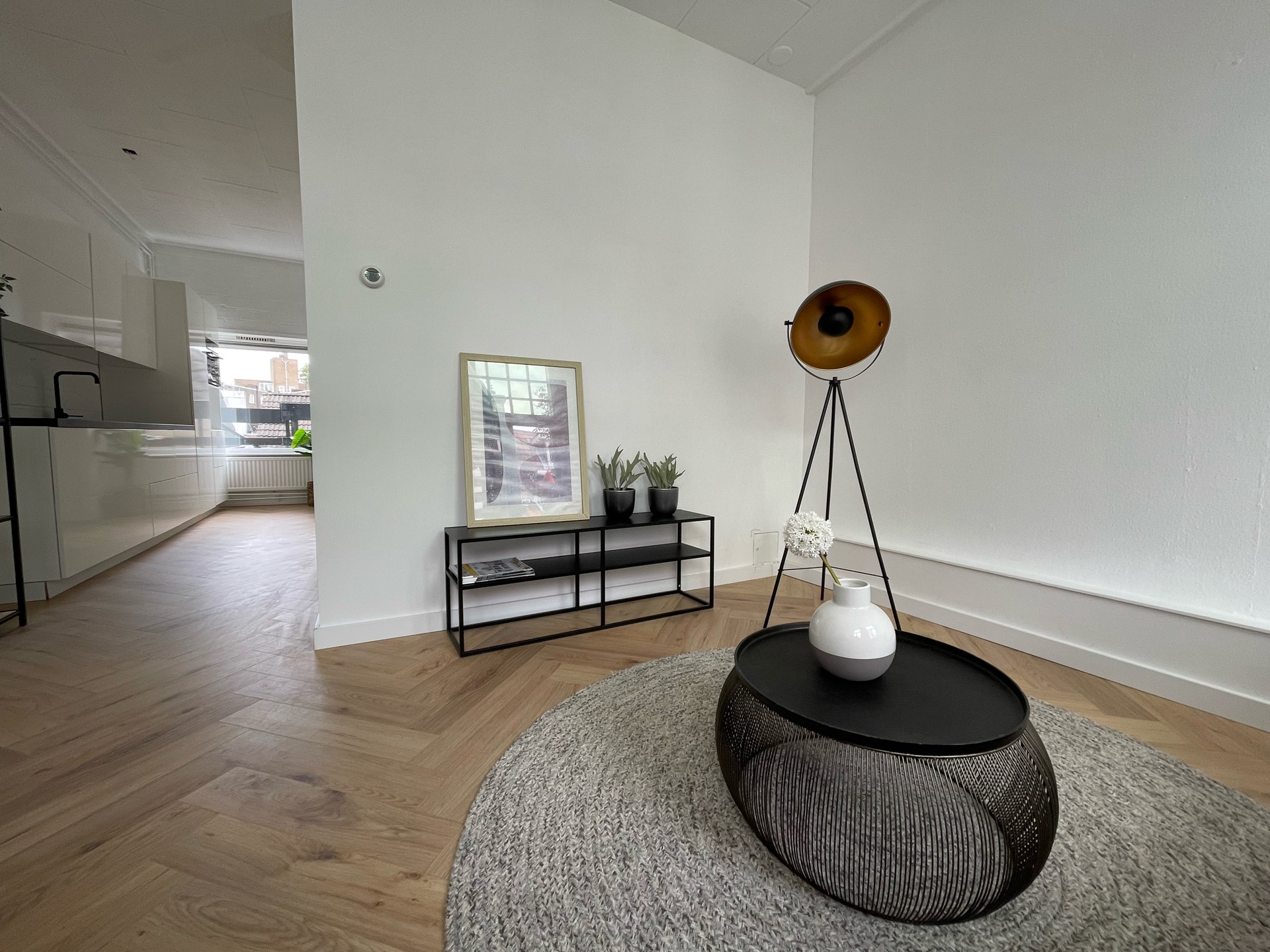 • Lichte woonkamer met hoog plafond.