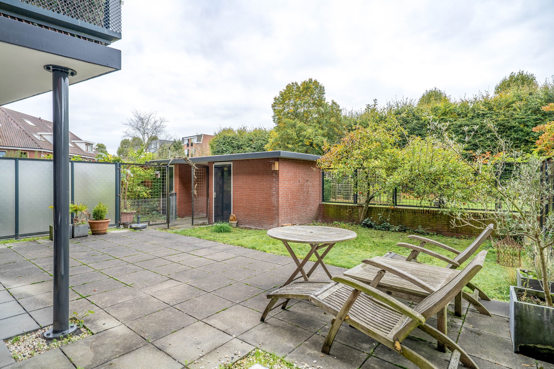 Stap vanuit de woonkamer zo je prive achtertuin van circa 35 m² in. Hier kun je heerlijk ontspannen in het zonnetje, barbecueën of je terugtrekken met een boek. Bovendien is er een prachtig onderhouden gezamenlijke binnentuin, exclusief voor bewoners toegankelijk, waar je elkaar kunt ontmoeten of rustig kunt genieten van het groen. Fietsen kun je veilig stallen in de gezamenlijke fietsenstalling.